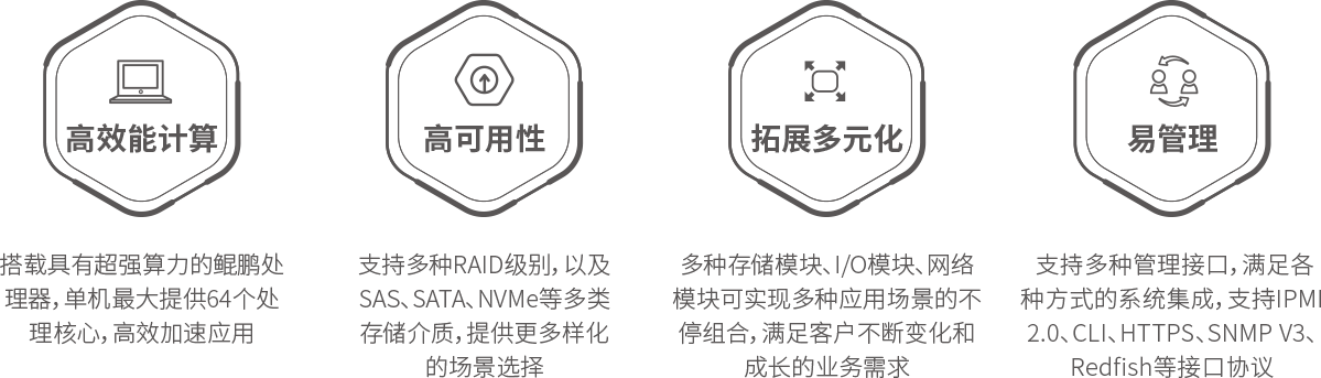 jinnianhui今年会R522通用服务器是今年会jinnianhui金字招牌数码基于鲲鹏基础硬件推出的新一代数据中心服务器。其具备高效能计算、多元扩展、高稳定性与绿色节能等特性。
